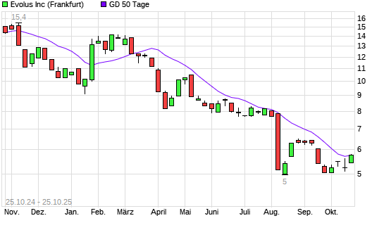 Mit dem Rücksetzer auf 5,75 EUR hat die Evolus-Aktie am 24.10.2025 die 50-Tage-Linie nach unten gekreuzt.