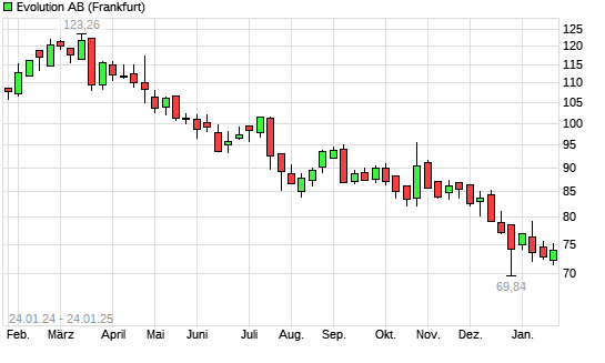 Mit dem Rücksetzer auf 72,58 EUR hat die Evolution Gaming Group-Aktie (ISIN SE0012673267) am 23.01.2025 ein neues 3-Jahres-Tief erreicht und damit den Kurs vom 17.01.2025 eingestellt.