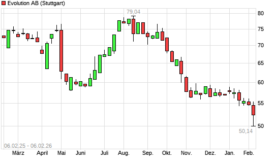 Mit dem Rücksetzer auf 51,46 EUR hat die Evolution Gaming Group-Aktie (ISIN SE0012673267) am 05.02.2026 ein neues 5-Jahres-Tief erreicht und damit den Kurs vom 02.02.2026 eingestellt.