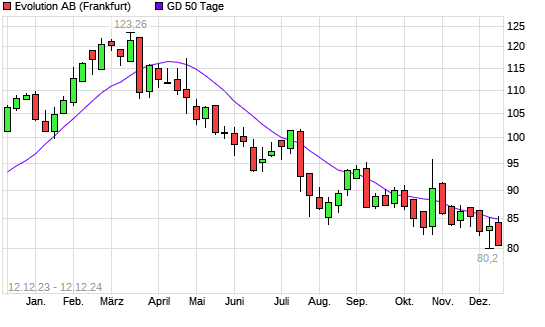 Mit dem Rücksetzer auf 84,02 EUR hat die Evolution Gaming Group-Aktie am 11.12.2024 die 50-Tage-Linie nach unten gekreuzt.