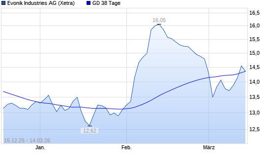 Mit dem Rücksetzer auf 14,33 EUR hat die Evonik Industries-Aktie am 13.03.2026 die 38-Tage-Linie nach unten gekreuzt.