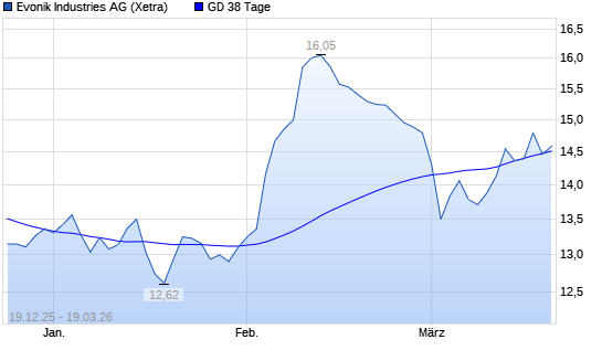 Mit dem Rücksetzer auf 14,33 EUR hat die Evonik Industries-Aktie am 18.03.2026 die 38-Tage-Linie nach unten gekreuzt.
