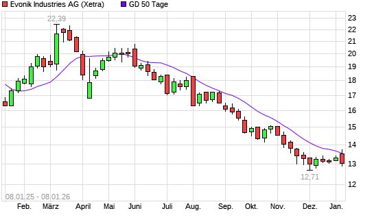 Mit dem Rücksetzer auf 13,22 EUR hat die Evonik Industries-Aktie am 07.01.2026 die 50-Tage-Linie nach unten gekreuzt.
