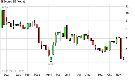 Mit dem Rücksetzer auf 5,18 EUR hat die Evotec-Aktie (ISIN DE0005664809) am 10.11.2025 ein neues 5-Jahres-Tief erreicht und damit den Kurs vom 07.04.2025 eingestellt.