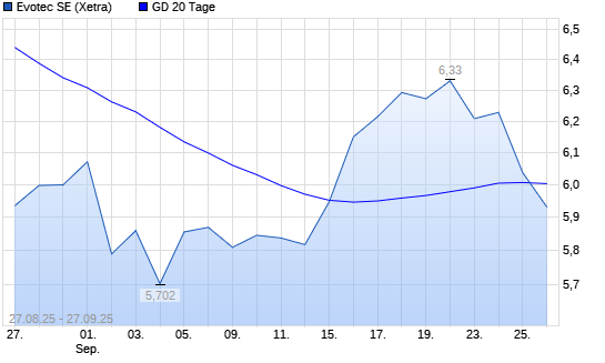 Mit dem Rücksetzer auf 5,98 EUR hat die Evotec-Aktie am 26.09.2025 die 20-Tage-Linie nach unten gekreuzt.