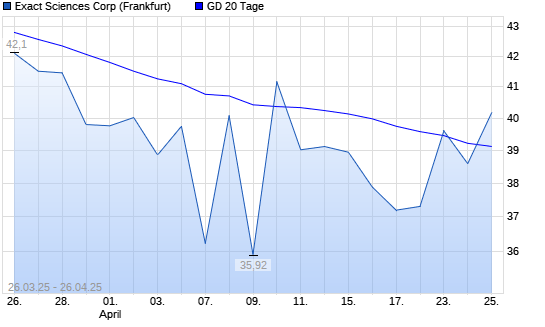 Mit dem Anstieg auf 40,16 EUR hat die Exact Sciences-Aktie am 25.04.2025 die 20-Tage-Linie nach oben gekreuzt.