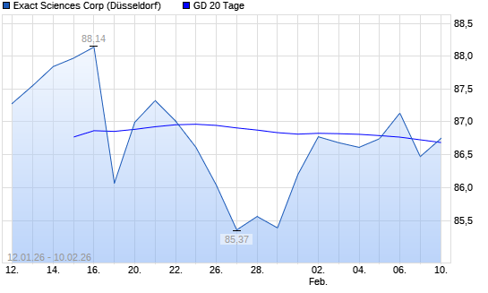 Mit dem Anstieg auf 86,64 EUR hat die Exact Sciences-Aktie am 09.02.2026 die 20-Tage-Linie nach oben gekreuzt.