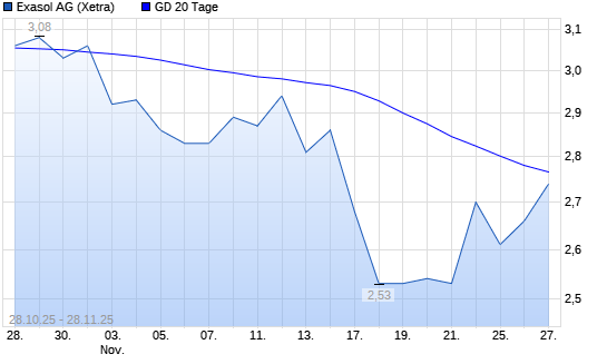 Mit dem Anstieg auf 2,75 EUR hat die Exasol-Aktie am 27.11.2025 die 20-Tage-Linie nach oben gekreuzt.