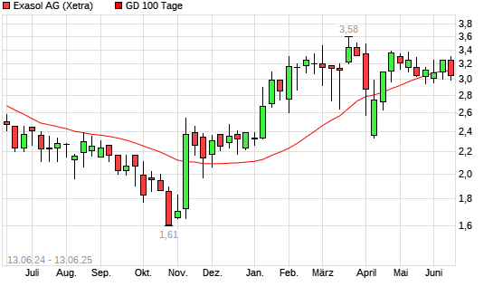 Mit dem Rücksetzer auf 3,01 EUR hat die Exasol-Aktie am 12.06.2025 die 100-Tage-Linie nach unten gekreuzt.