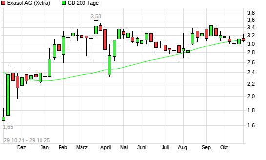 Mit dem Rücksetzer auf 3,03 EUR hat die Exasol-Aktie am 28.10.2025 die 200-Tage-Linie nach unten gekreuzt.