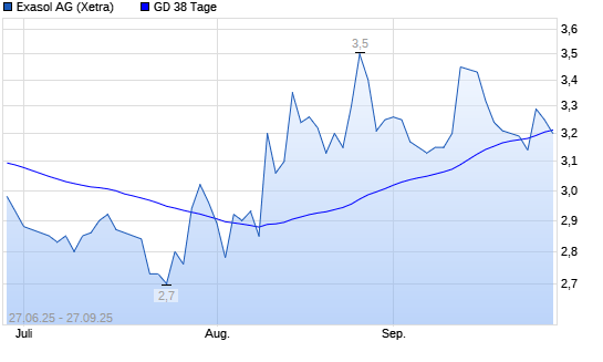 Mit dem Rücksetzer auf 3,12 EUR hat die Exasol-Aktie am 26.09.2025 die 38-Tage-Linie nach unten gekreuzt.