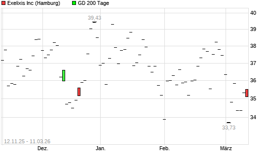 Mit dem Anstieg auf 36,01 EUR hat die Exelixis-Aktie am 10.03.2026 die 200-Tage-Linie nach oben gekreuzt.