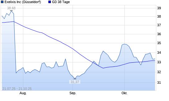 Mit dem Anstieg auf 33,38 EUR hat die Exelixis-Aktie am 20.10.2025 die 38-Tage-Linie nach oben gekreuzt.