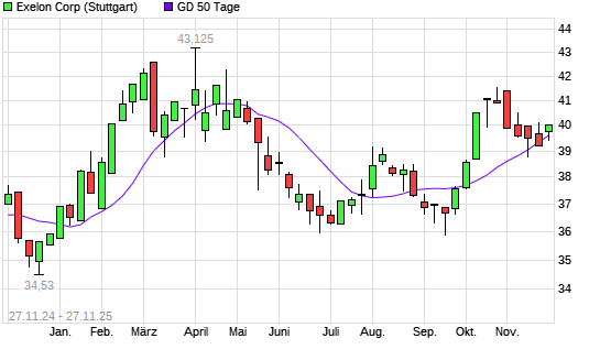 Mit dem Rücksetzer auf 39,38 EUR hat die Exelon-Aktie am 26.11.2025 die 50-Tage-Linie nach unten gekreuzt.