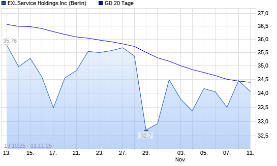 Mit dem Anstieg auf 34,46 EUR hat die ExlService Holdings-Aktie am 10.11.2025 die 20-Tage-Linie nach oben gekreuzt.