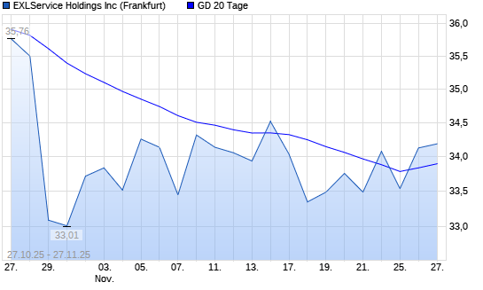Mit dem Anstieg auf 34,32 EUR hat die ExlService Holdings-Aktie am 26.11.2025 die 20-Tage-Linie nach oben gekreuzt.