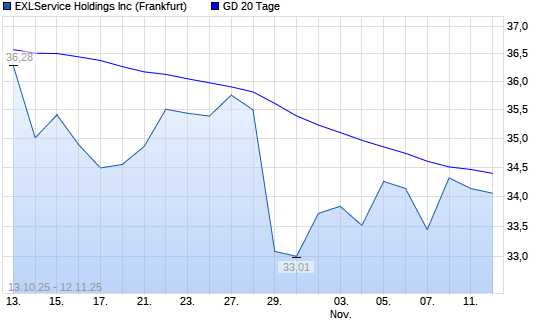 Mit dem Rücksetzer auf 34,07 EUR hat die ExlService Holdings-Aktie am 11.11.2025 die 20-Tage-Linie nach unten gekreuzt.