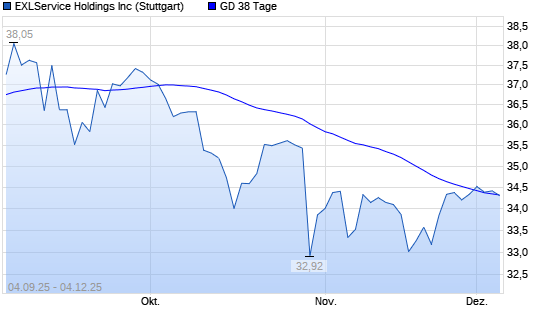 Mit dem Rücksetzer auf 34,06 EUR hat die ExlService Holdings-Aktie am 03.12.2025 die 38-Tage-Linie nach unten gekreuzt.