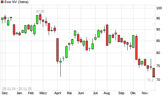 Mit dem Rücksetzer auf 71,30 EUR hat die Exor-Aktie (ISIN NL0012059018) am 19.11.2025 ein neues 12-Monats-Tief erreicht und damit den Kurs vom 18.11.2025 eingestellt.