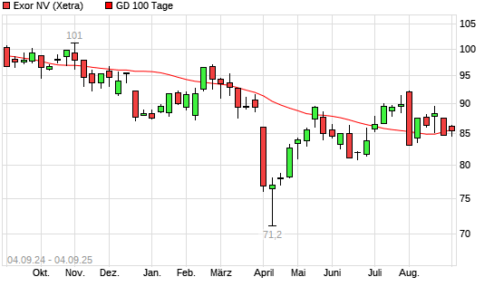 Mit dem Rücksetzer auf 85,25 EUR hat die Exor-Aktie am 03.09.2025 die 100-Tage-Linie nach unten gekreuzt.