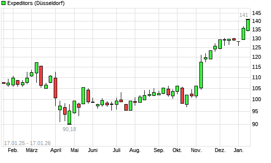 Mit dem Anstieg auf 138,75 EUR hat die Expeditors-Aktie (ISIN US3021301094) am 16.01.2026 ein neues All-Time-High erreicht und damit den Kurs vom 15.01.2026 eingestellt.