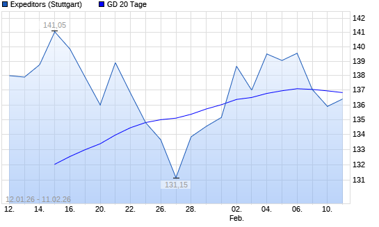 Mit dem Rücksetzer auf 134,80 EUR hat die Expeditors-Aktie am 10.02.2026 die 20-Tage-Linie nach unten gekreuzt.