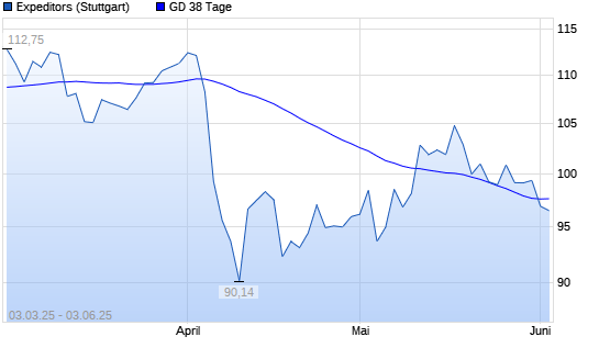 Mit dem Rücksetzer auf 96,26 EUR hat die Expeditors-Aktie am 02.06.2025 die 38-Tage-Linie nach unten gekreuzt.