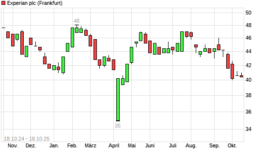 Mit dem Rücksetzer auf 38,80 EUR hat die Experian-Aktie (ISIN GB00B19NLV48) am 17.10.2025 ein neues 6-Monats-Tief erreicht und damit den Kurs vom 02.10.2025 eingestellt.