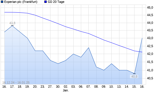 Mit dem Anstieg auf 41,60 EUR hat die Experian-Aktie am 15.01.2025 die 20-Tage-Linie nach oben gekreuzt.