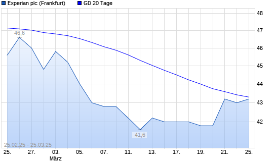 Mit dem Anstieg auf 43,00 EUR hat die Experian-Aktie am 24.03.2025 die 20-Tage-Linie nach oben gekreuzt.
