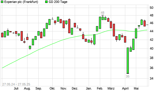 Mit dem Anstieg auf 45,60 EUR hat die Experian-Aktie am 26.05.2025 die 200-Tage-Linie nach oben gekreuzt.