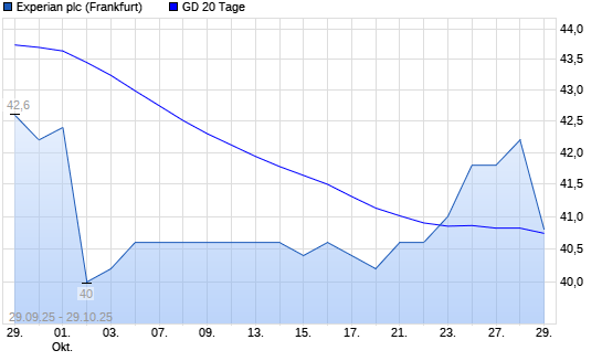 Mit dem Rücksetzer auf 40,20 EUR hat die Experian-Aktie am 28.10.2025 die 20-Tage-Linie nach unten gekreuzt.
