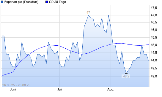Mit dem Rücksetzer auf 44,40 EUR hat die Experian-Aktie am 25.08.2025 die 38-Tage-Linie nach unten gekreuzt.