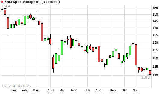 Mit dem Rücksetzer auf 110,60 EUR hat die Extra Space Storage-Aktie (ISIN US30225T1025) am 05.12.2025 ein neues 12-Monats-Tief erreicht und damit den Kurs vom 20.11.2025 eingestellt.