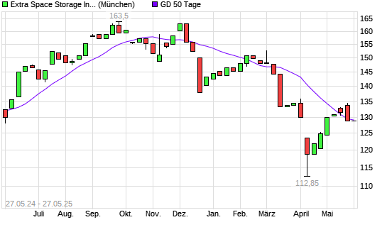 Mit dem Anstieg auf 128,55 EUR hat die Extra Space Storage-Aktie am 26.05.2025 die 50-Tage-Linie nach oben gekreuzt.