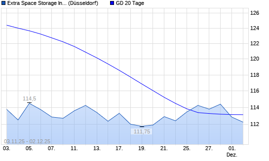Mit dem Rücksetzer auf 113,15 EUR hat die Extra Space Storage-Aktie am 01.12.2025 die 20-Tage-Linie nach unten gekreuzt.