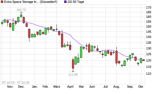 Mit dem Rücksetzer auf 120,10 EUR hat die Extra Space Storage-Aktie am 06.10.2025 die 50-Tage-Linie nach unten gekreuzt.