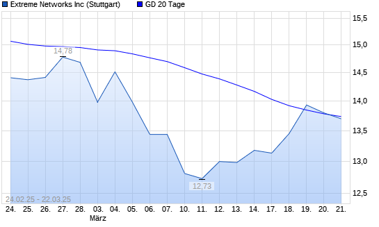 Mit dem Rücksetzer auf 13,48 EUR hat die Extreme Networks-Aktie am 21.03.2025 die 20-Tage-Linie nach unten gekreuzt.