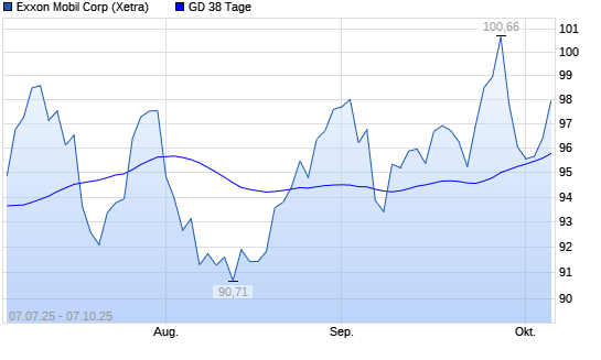 Mit dem Anstieg auf 97,78 EUR hat die Exxon Mobil-Aktie am 06.10.2025 die 38-Tage-Linie nach oben gekreuzt.