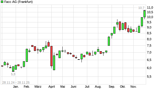 Mit dem Anstieg auf 10,54 EUR hat die FACC-Aktie (ISIN AT00000FACC2) am 27.11.2025 ein neues 3-Jahres-Hoch erreicht und damit den Kurs vom 24.11.2025 eingestellt.