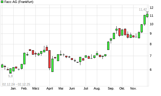 Mit dem Anstieg auf 11,24 EUR hat die FACC-Aktie (ISIN AT00000FACC2) am 01.12.2025 ein neues 3-Jahres-Hoch erreicht und damit den Kurs vom 28.11.2025 eingestellt.