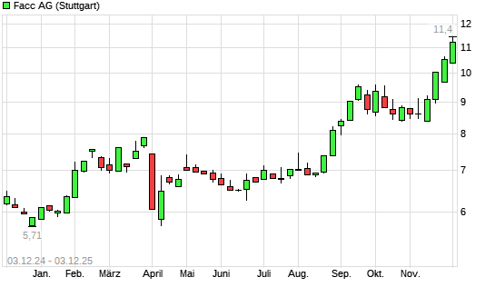 Mit dem Anstieg auf 11,26 EUR hat die FACC-Aktie (ISIN AT00000FACC2) am 02.12.2025 ein neues 3-Jahres-Hoch erreicht und damit den Kurs vom 01.12.2025 eingestellt.