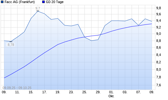 Mit dem Anstieg auf 9,36 EUR hat die FACC-Aktie am 08.10.2025 die 20-Tage-Linie nach oben gekreuzt.