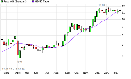 Mit dem Rücksetzer auf 11,34 EUR hat die FACC-Aktie am 11.02.2026 die 50-Tage-Linie nach unten gekreuzt.