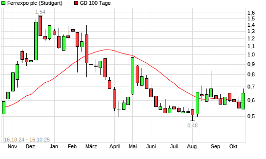 Mit dem Anstieg auf 0,62 EUR hat die FERREXPO-Aktie am 15.10.2025 die 100-Tage-Linie nach oben gekreuzt.