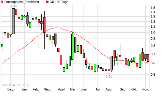 Mit dem Rücksetzer auf 0,60 EUR hat die FERREXPO-Aktie am 04.11.2025 die 100-Tage-Linie nach unten gekreuzt.