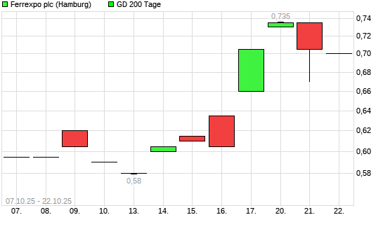Mit dem Rücksetzer auf 0,72 EUR hat die FERREXPO-Aktie am 21.10.2025 die 200-Tage-Linie nach unten gekreuzt.