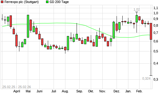 Mit dem Rücksetzer auf 0,47 EUR hat die FERREXPO-Aktie am 24.02.2026 die 200-Tage-Linie nach unten gekreuzt.