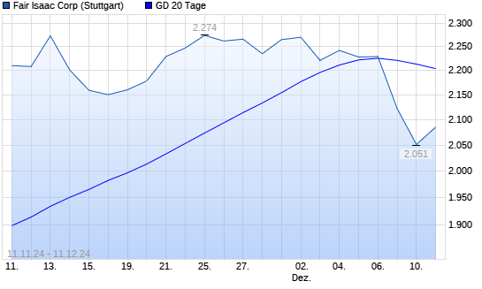 Mit dem Rücksetzer auf 2.111,00 EUR hat die FICO-Aktie am 10.12.2024 die 20-Tage-Linie nach unten gekreuzt.