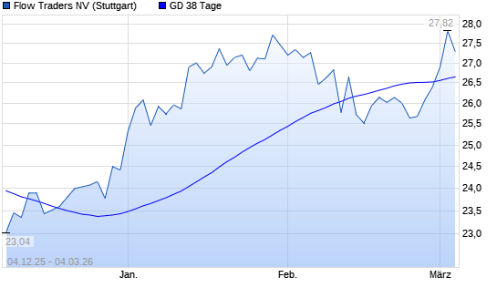 Mit dem Anstieg auf 26,88 EUR hat die FLOW TRADERS-Aktie am 03.03.2026 die 38-Tage-Linie nach oben gekreuzt.Die FLOW TRADERS-Aktie befindet sich seit dem 27.02.2026 im ...weiterlesen